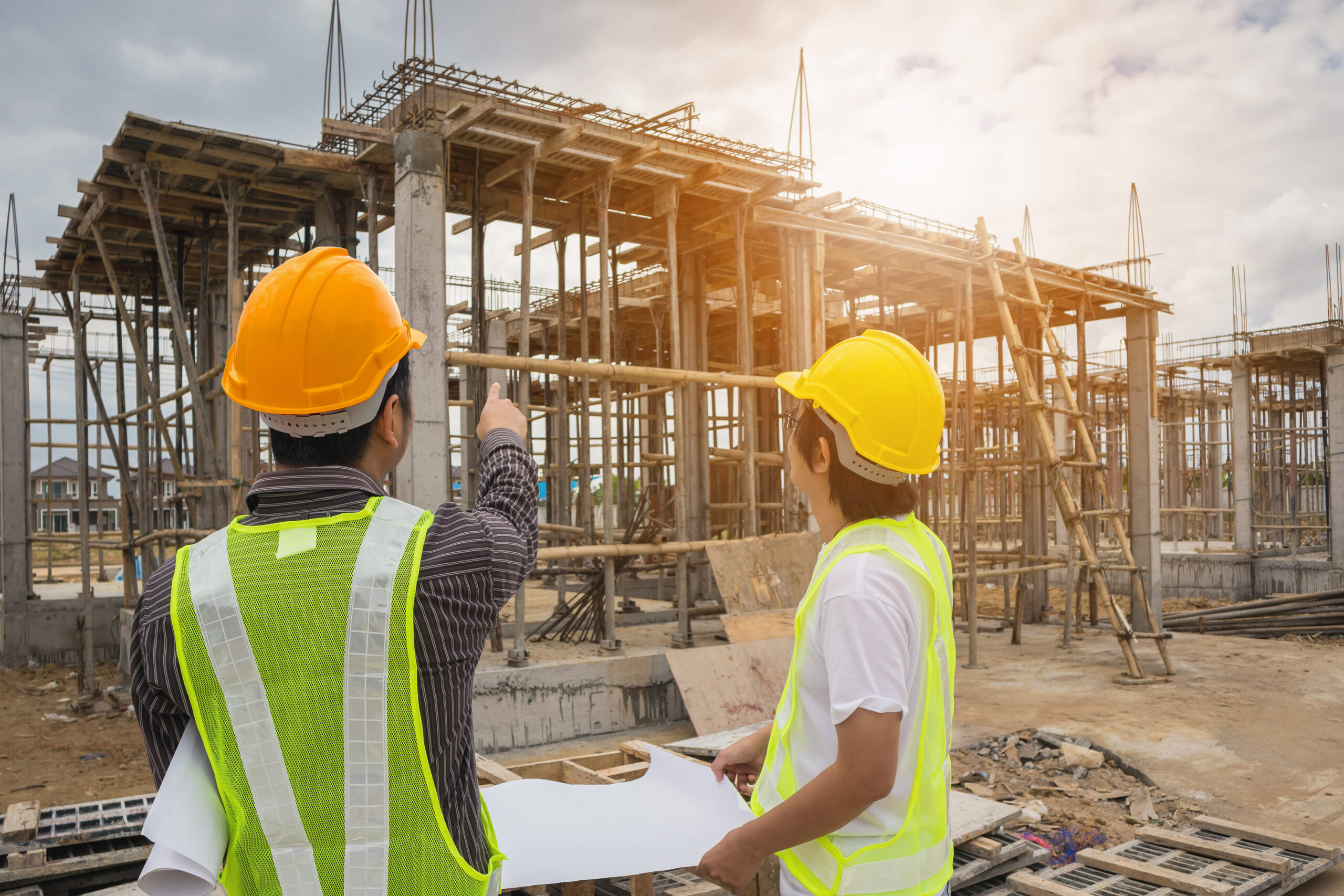 Engenheiro analisando projeto em obra, ilustrando o uso de peças técnicas na construção civil.